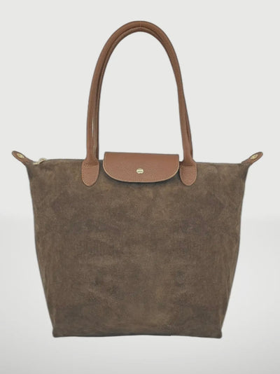 Carla Suede Leather Bag In Taupe