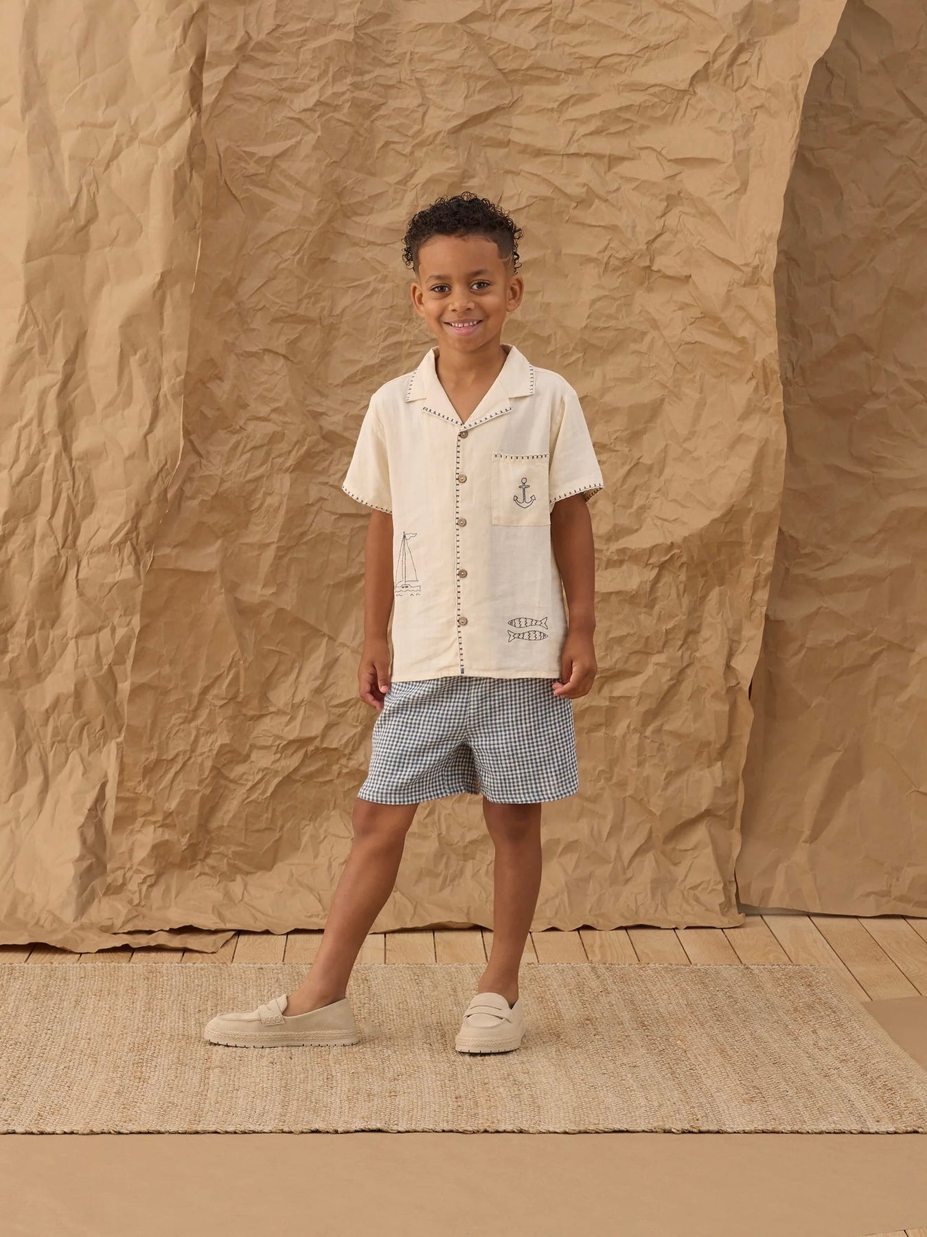 This button up boys shirt features a lapel collar and chest pocket. Enjoy seaside days in this cool look.