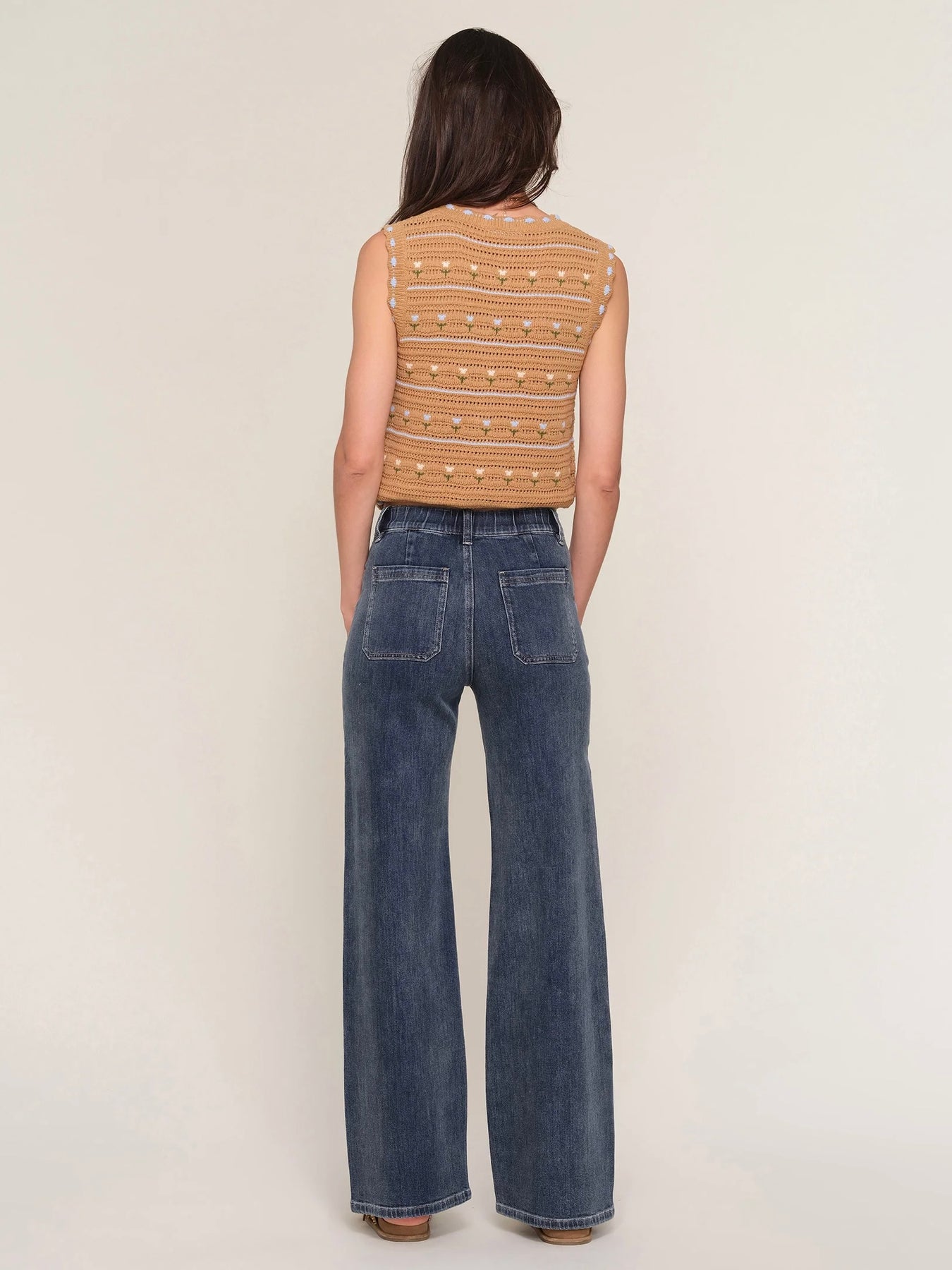 The Milena Pant is a mid-rise pant with patch pockets. It has a super flattering, relaxed, straight leg.