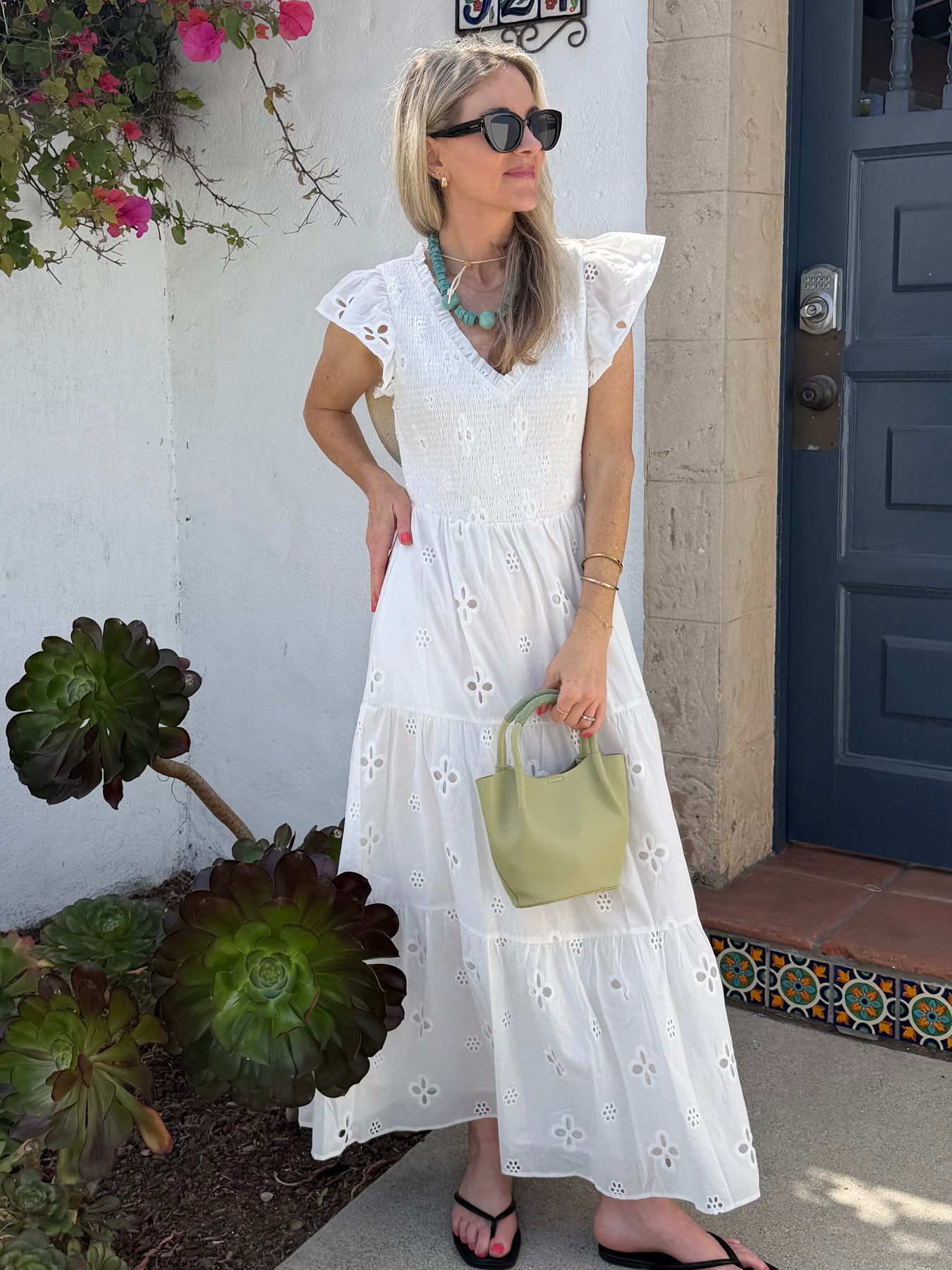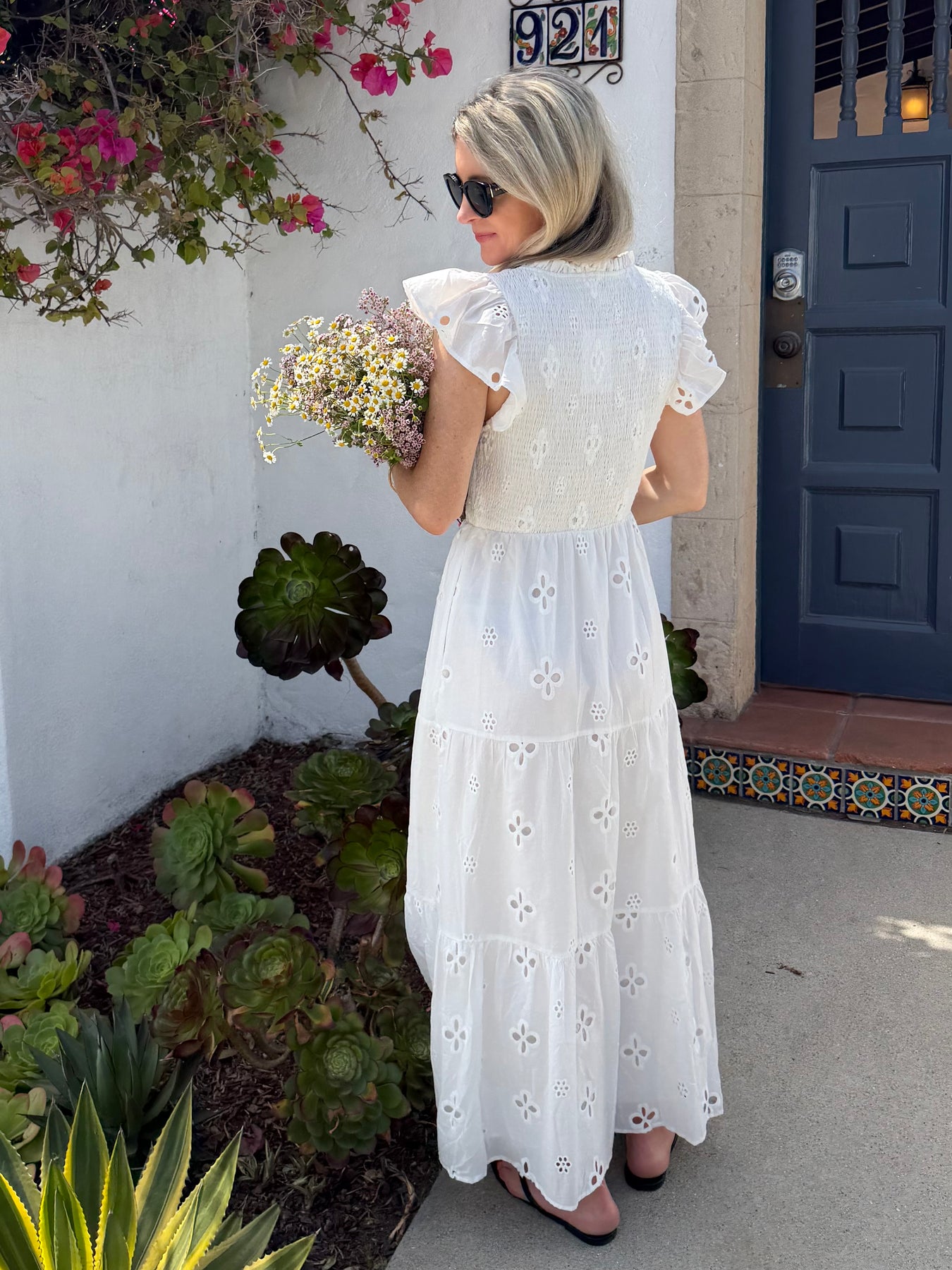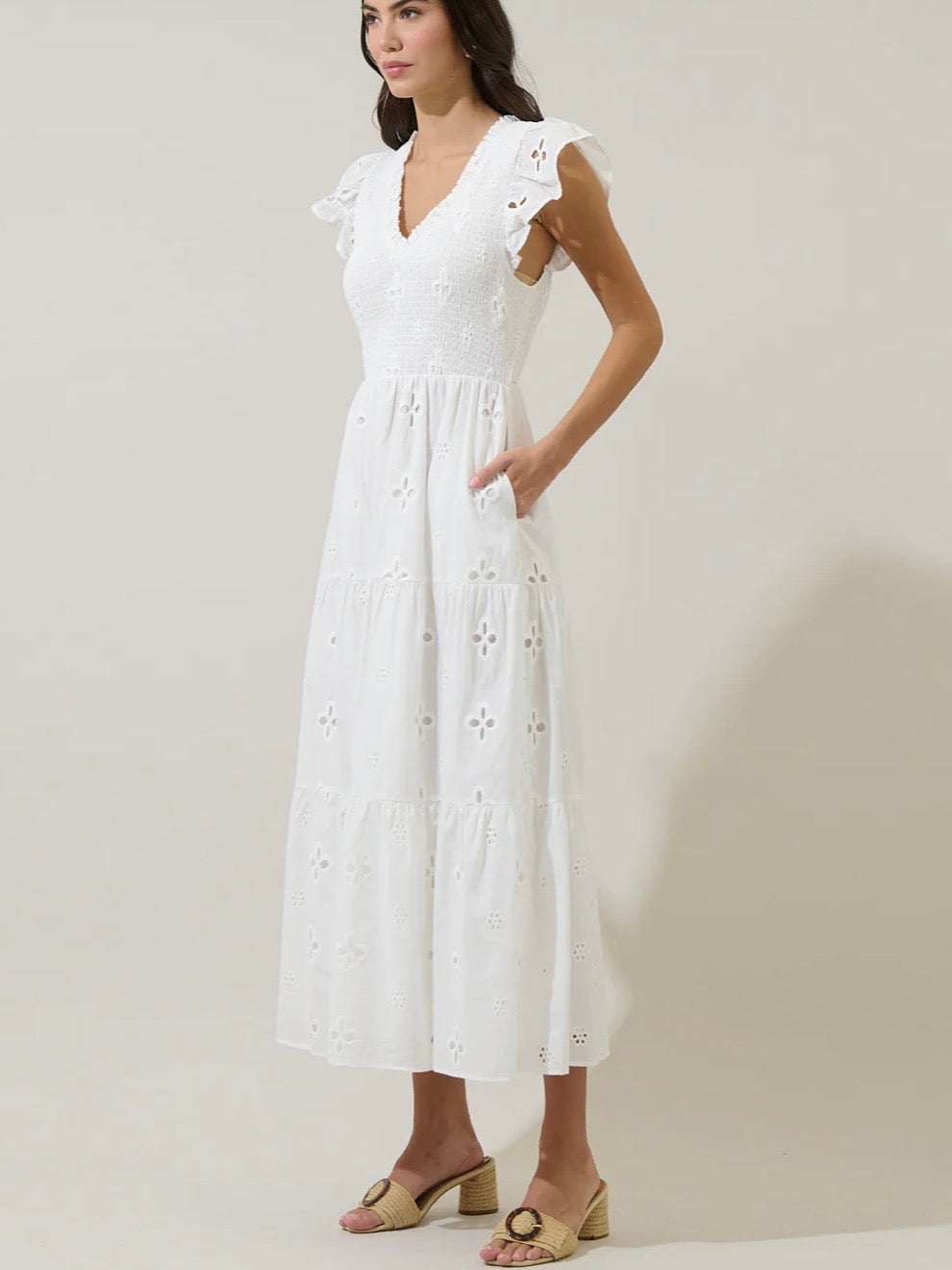 The Kinna maxi offers true romance in all-over eyelet. The smocked bodice gives way to a tiered skirt for a flattering fit. Composition is cotton.