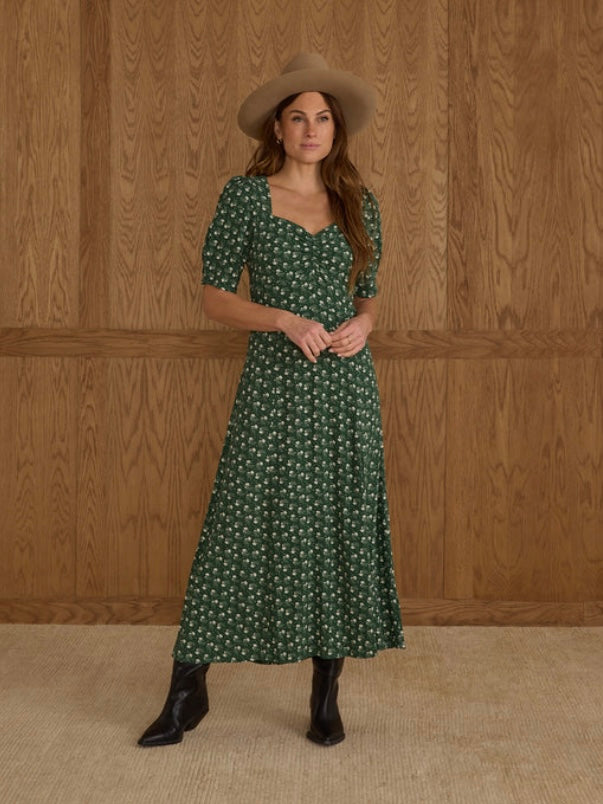 Our flattering Violet Dress is perfect for all your special outings, featuring elegant above-elbow sleeves and soft gathering at the front bodice for a feminine touch.