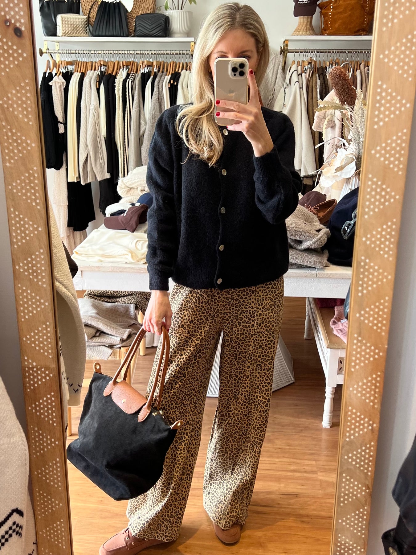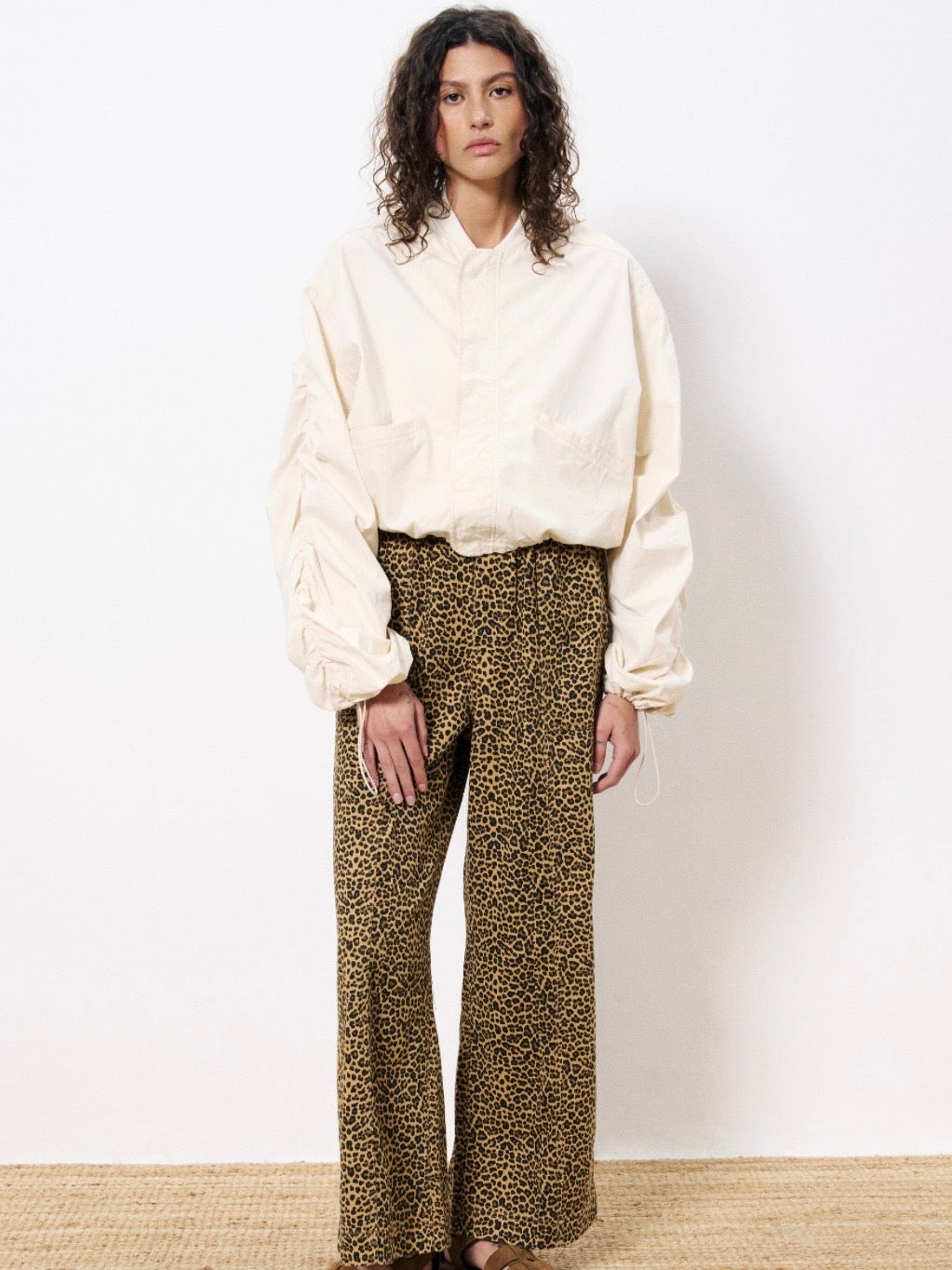 Leopard print pants with a relaxed fit and an elastic waist.