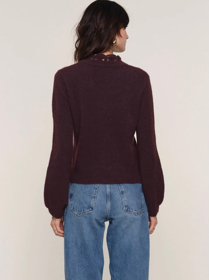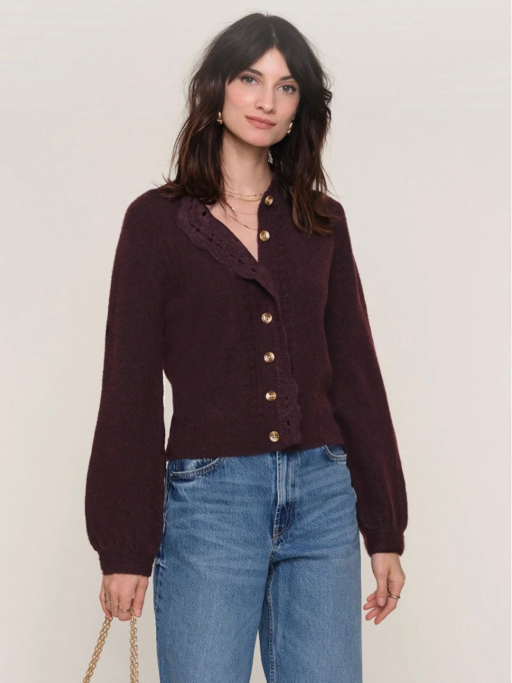 The Maudie Cardi is a Heartloom essential. Made from a super soft yarn, it features a slim fit, blouson sleeves and a crochet detail at the front opening edge. This will be a fall staple.
