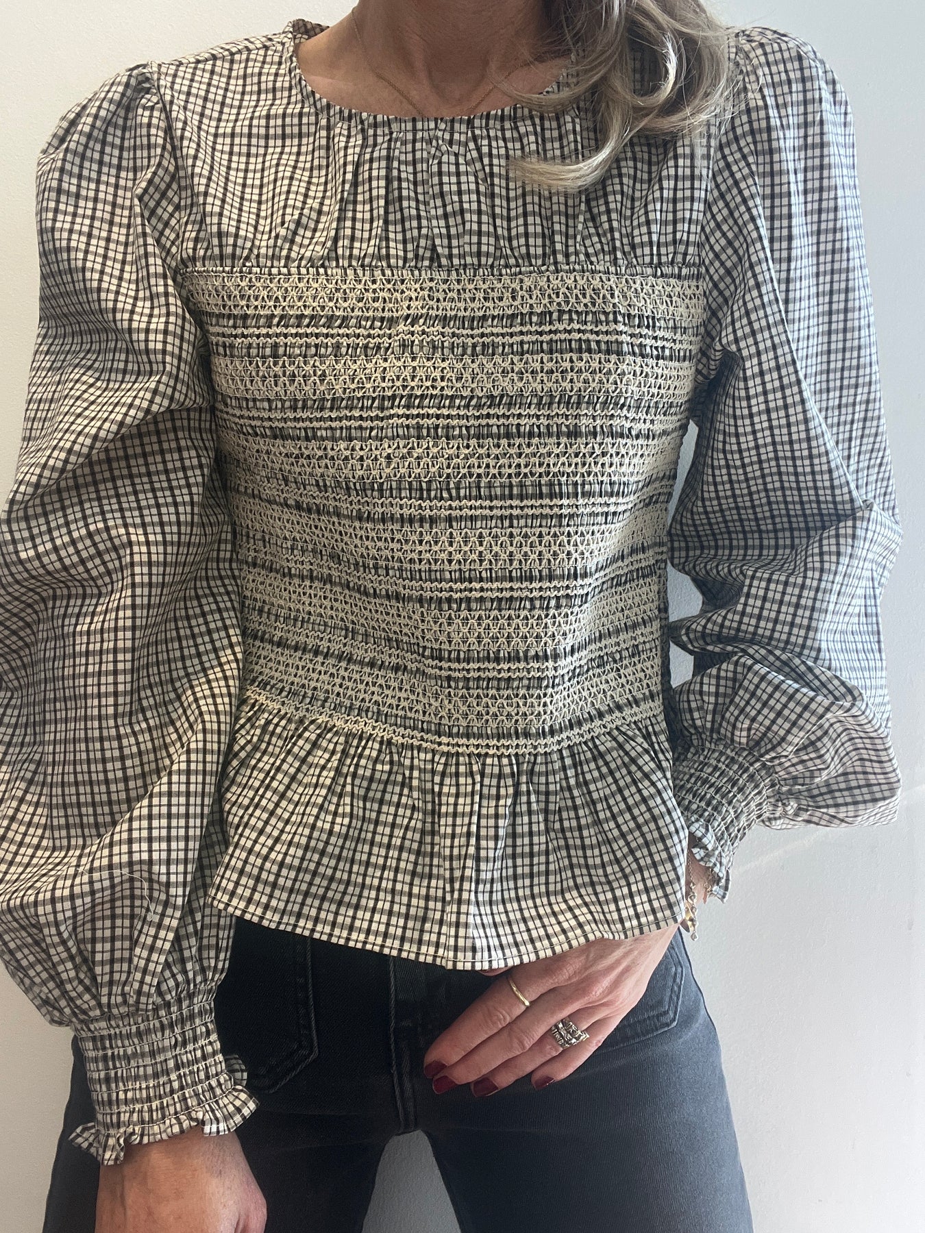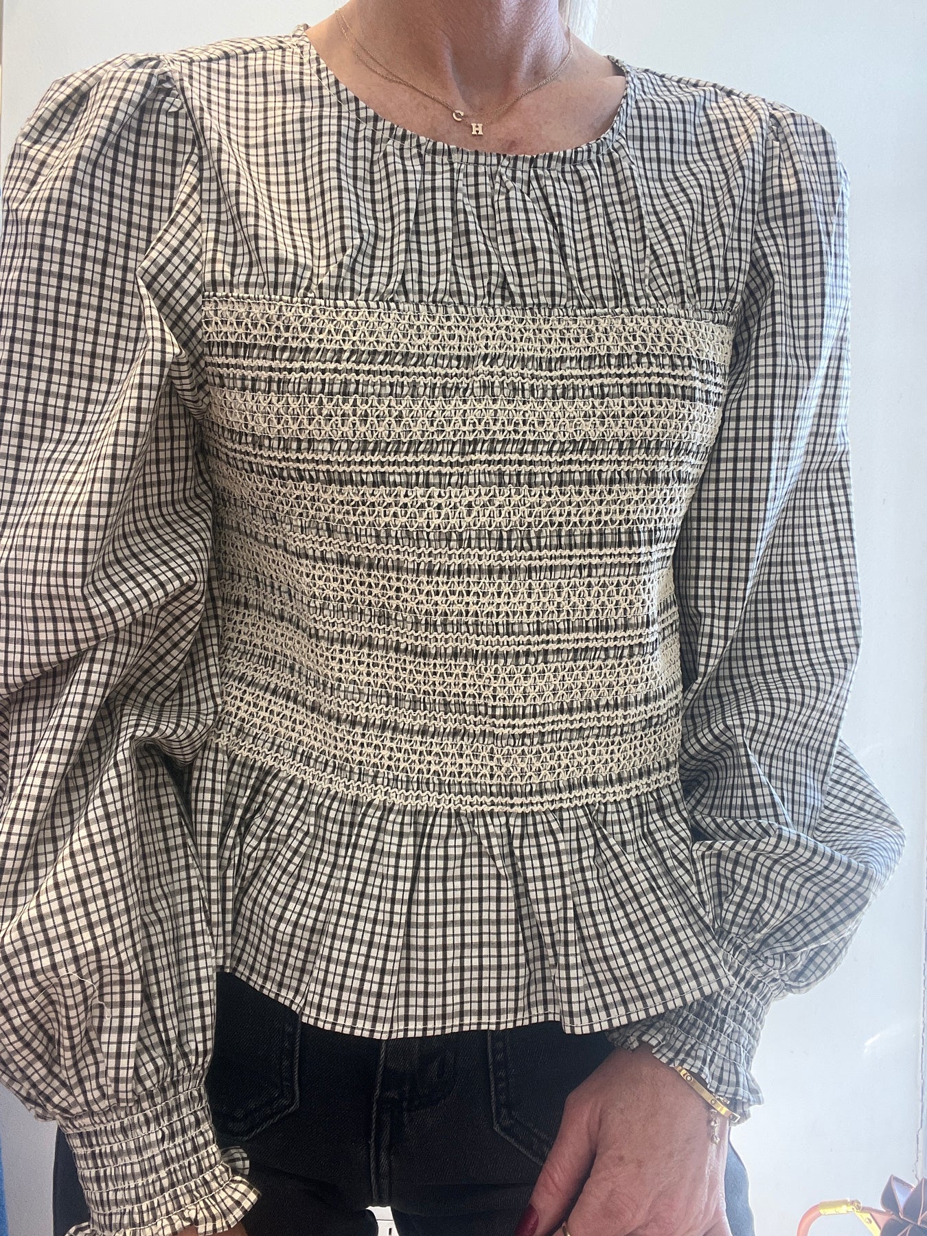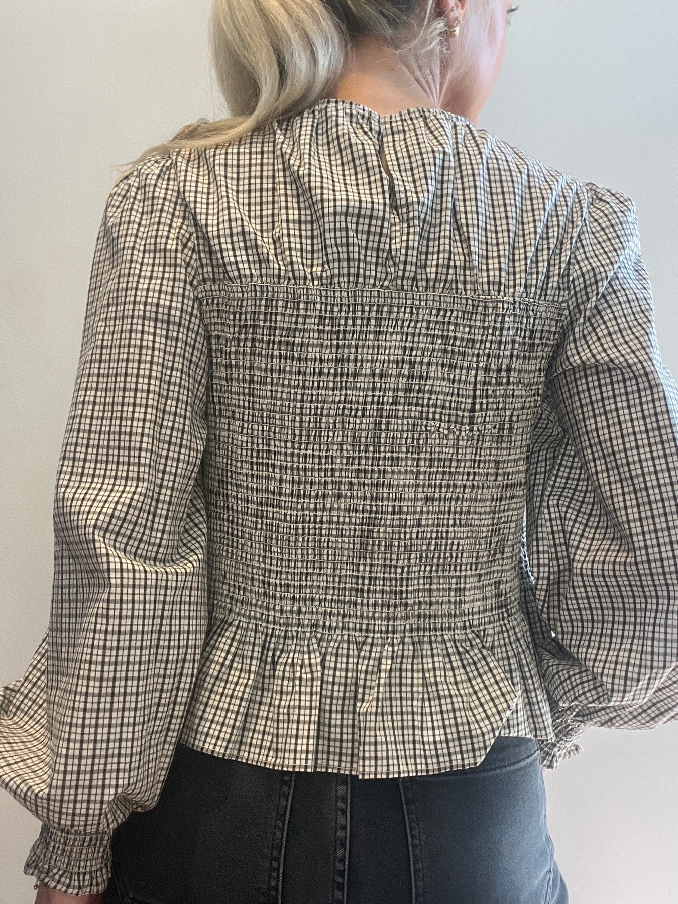 Merritt Plaid Smocked Blouse Cream/Brown