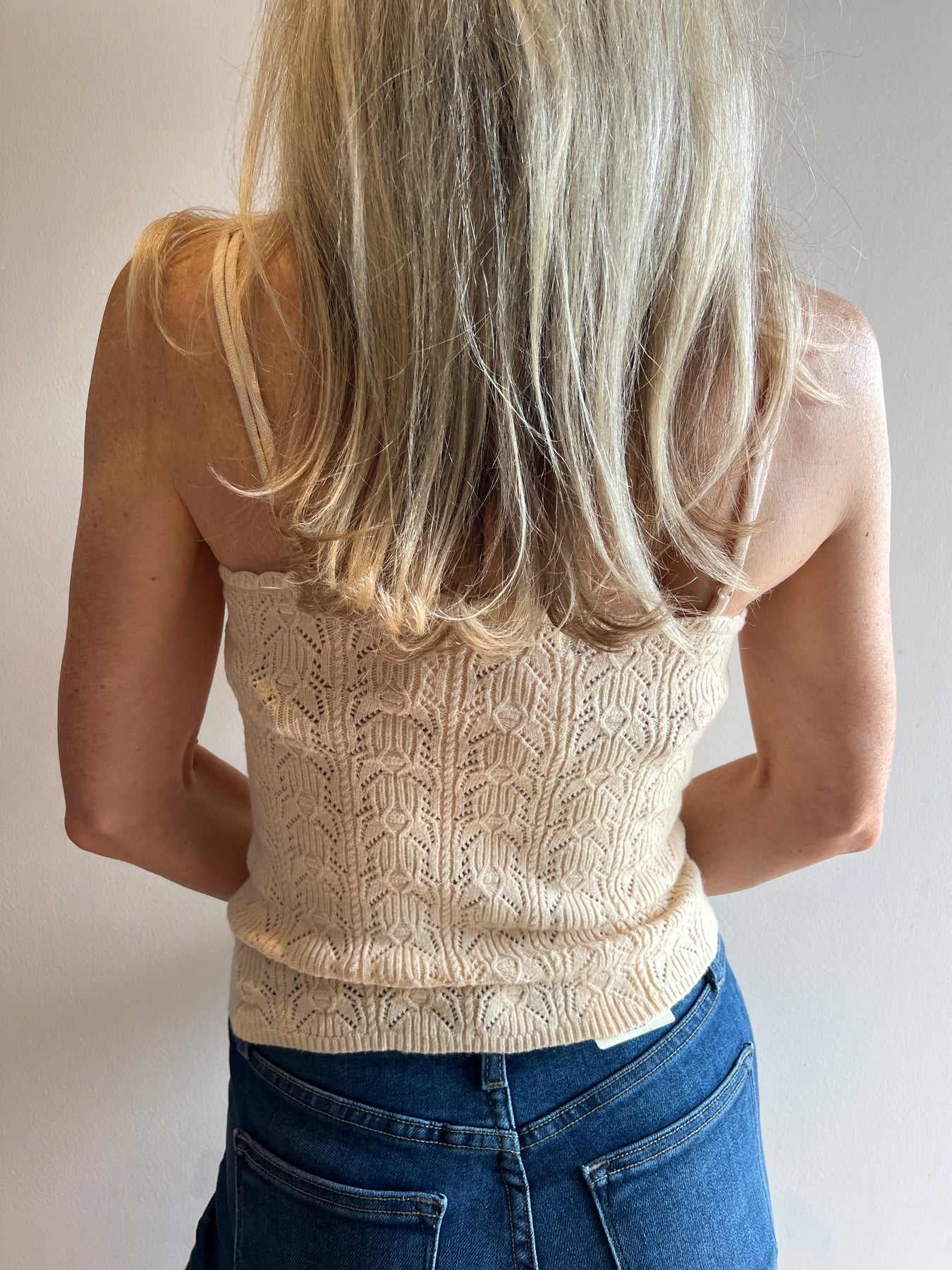 This tank features a soft knit fabric, adjustable straps and button front detail.