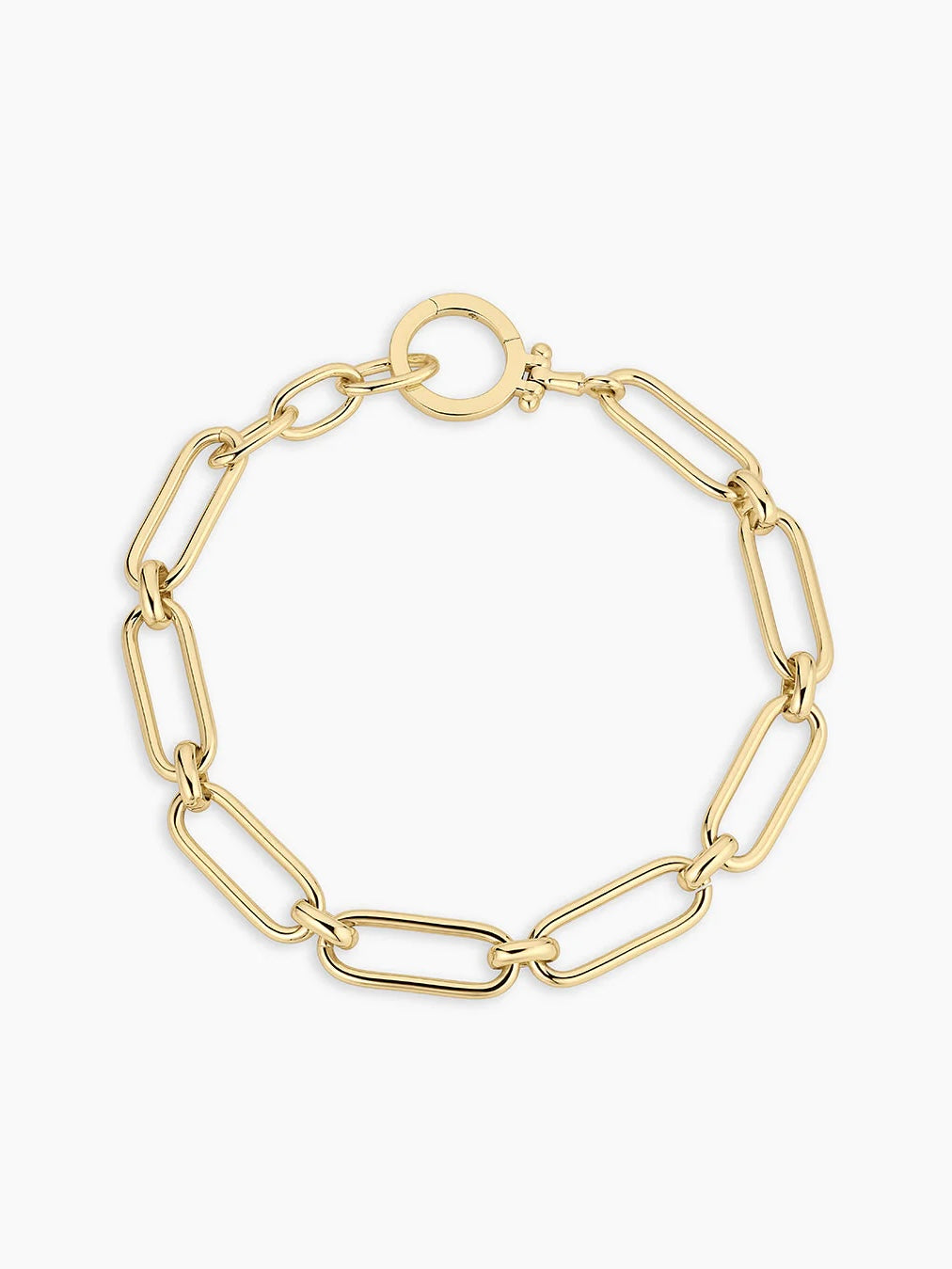 Designed to be worn with charms or without, this 18k gold plated chain necklace bracelet features our signature clasp. Elevate your every day look and wear this with multiple charms or style it with other bracelets for an effortlessly cool stack.
