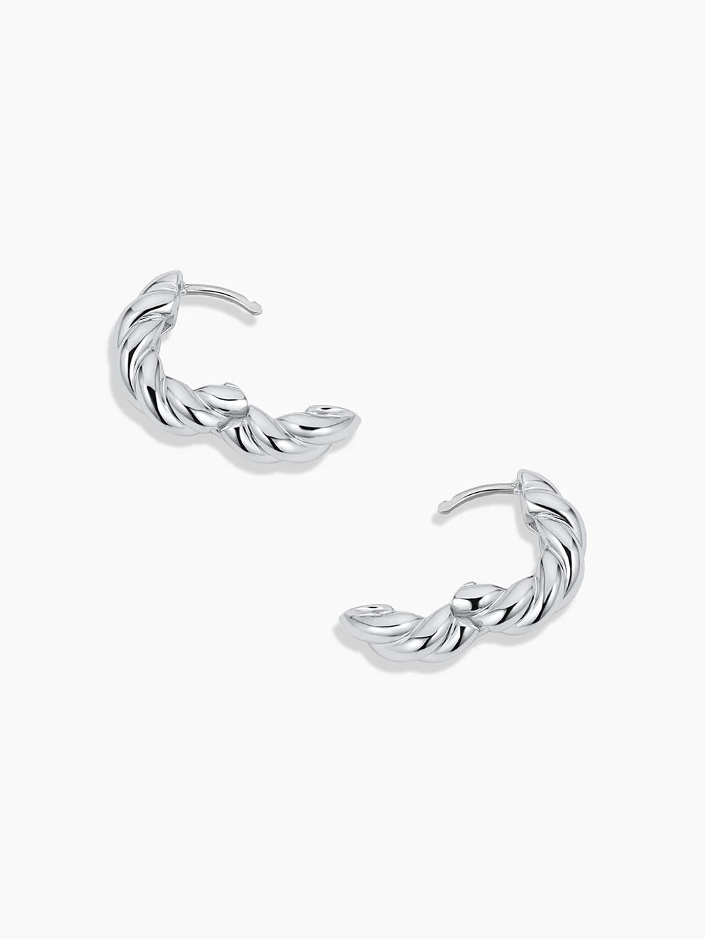 Elevate your style with the Crew Helium Huggies. Featuring a unique twist texture and helium design, these silver plated huggie earrings transition seamlessly from day to night. We love wearing ours alongside silver and diamond studs.