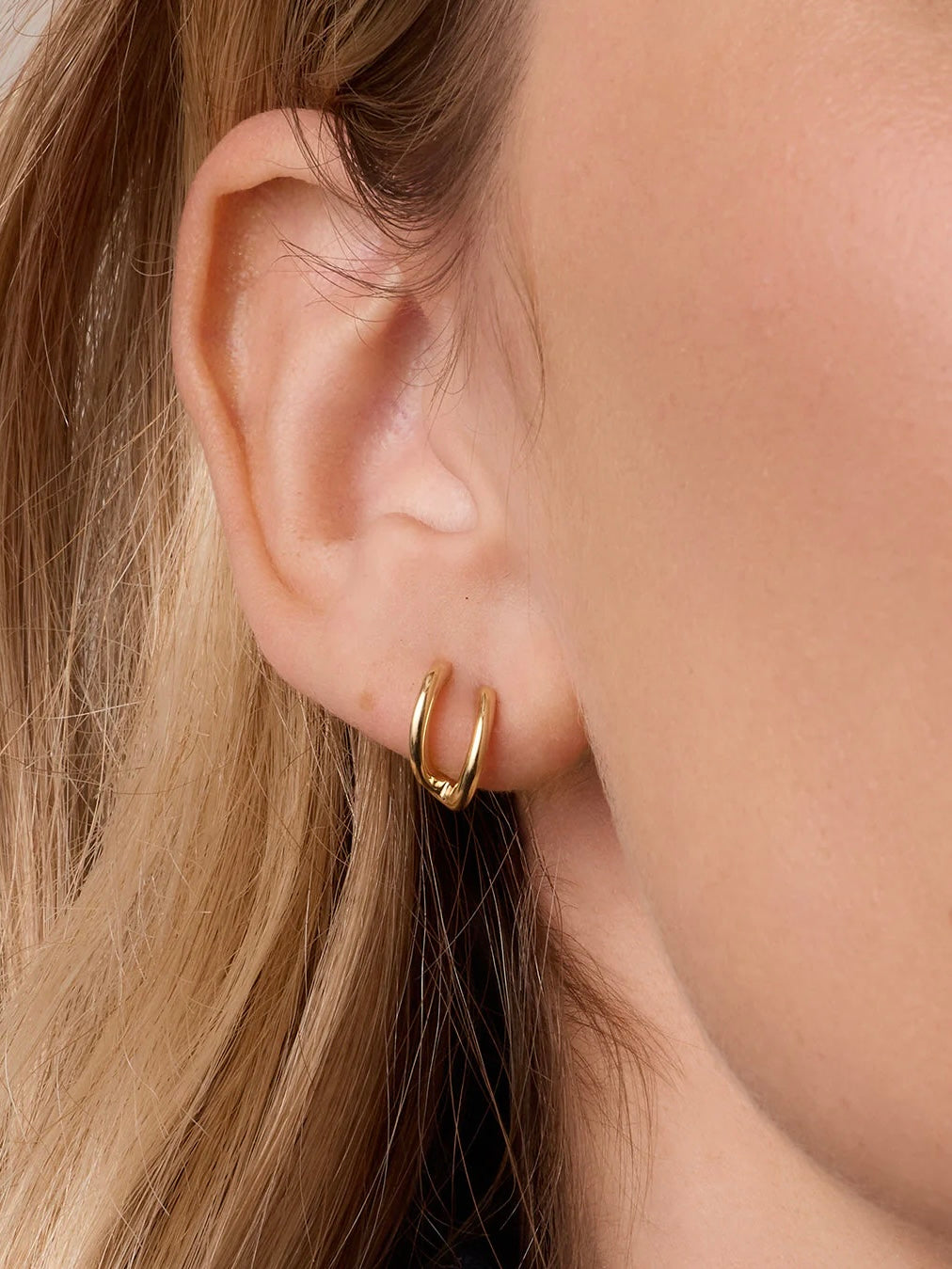 Fake a full stack with these 18k gold plated huggie hoop earrings - designed to make it look like you have multiple piercings, even if you only have one. Stack these alongside the Shimmer Double Huggies for a statement stack, or keep it simple and wear these on their own.