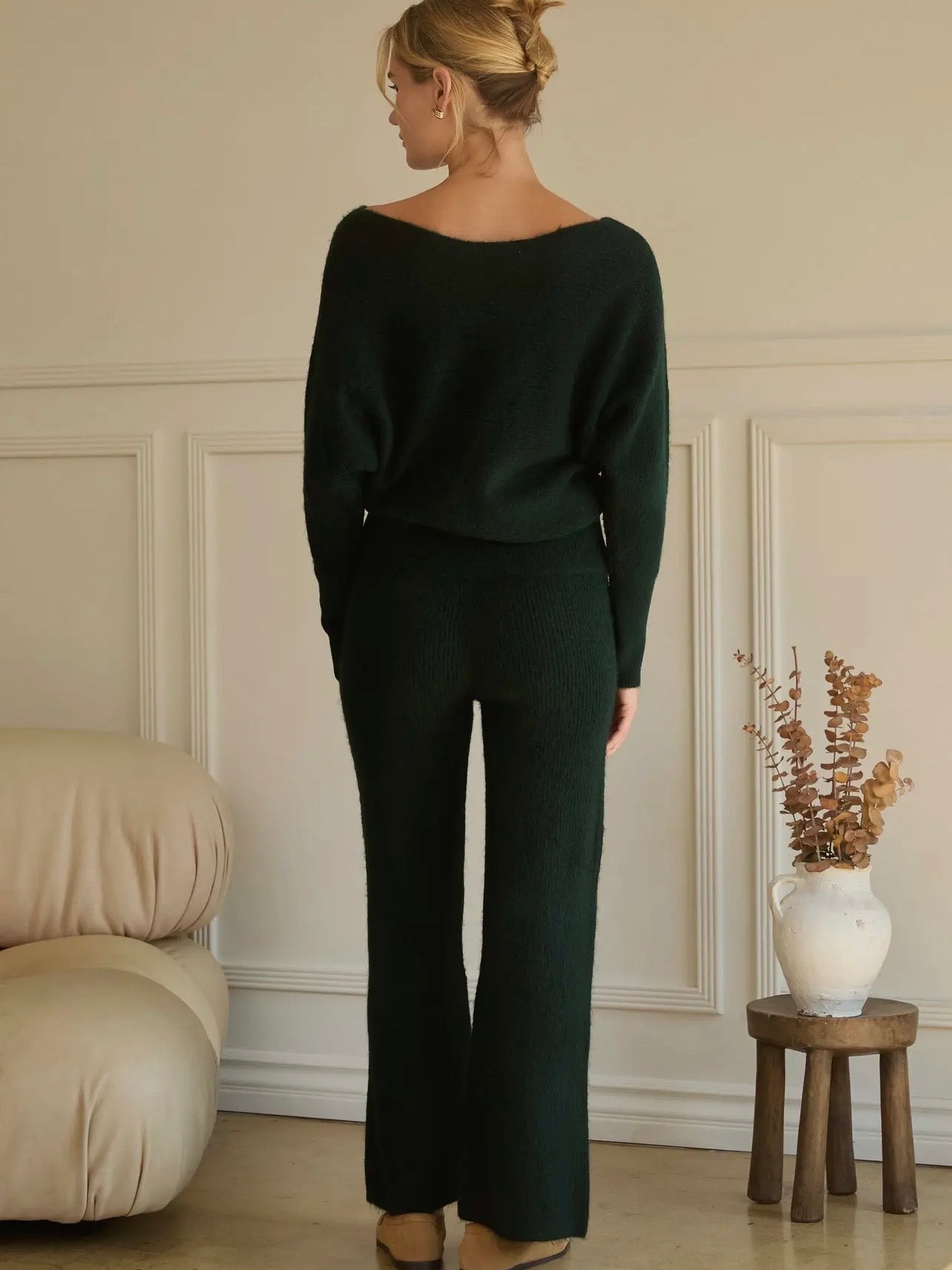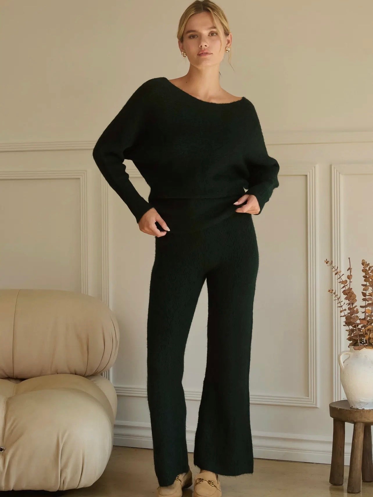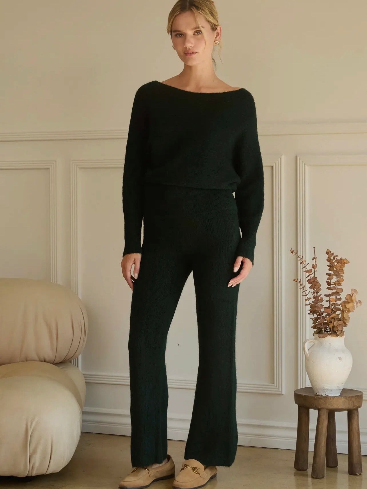Comfort meets style with these ribbed wide leg pants. Crafted from soft, stretchy knit fabric they offer a relaxed fit for comfort.
