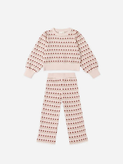 RYLEE + CRU - Jacquard Knit Set in Ruby Hearts