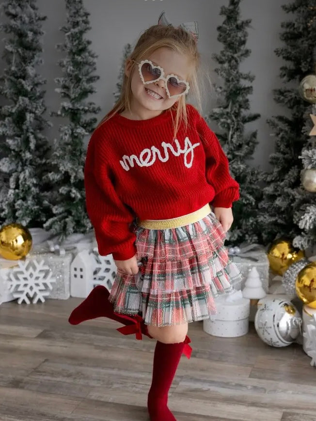 The Christmas Plaid Tiered Tutu is a fun dress up tutu/skirt for celebrating Christmas!
