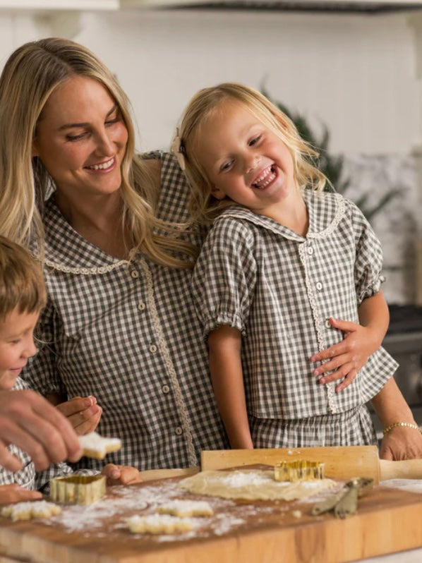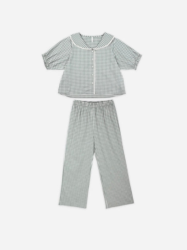RYLEE + CRU - Kids Ruffle Pajamas in Evergreen Gingham