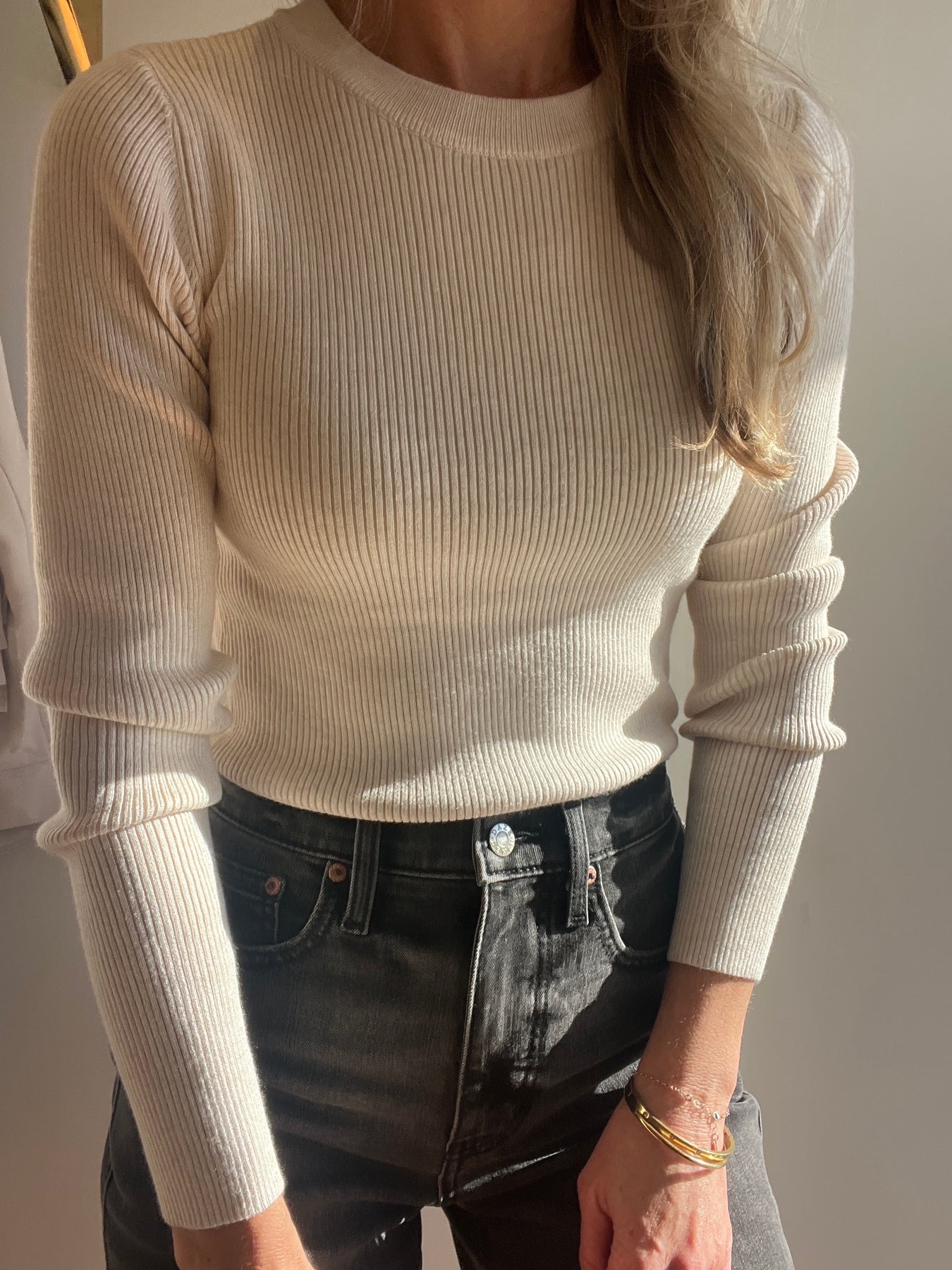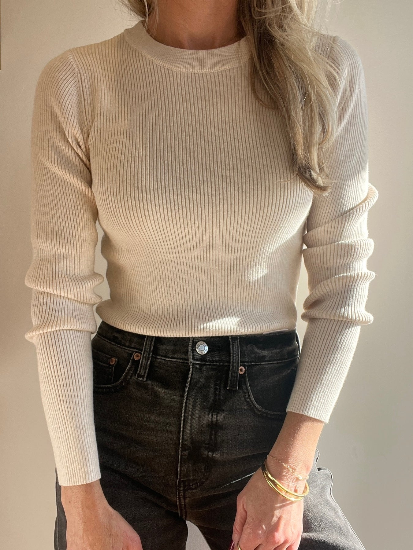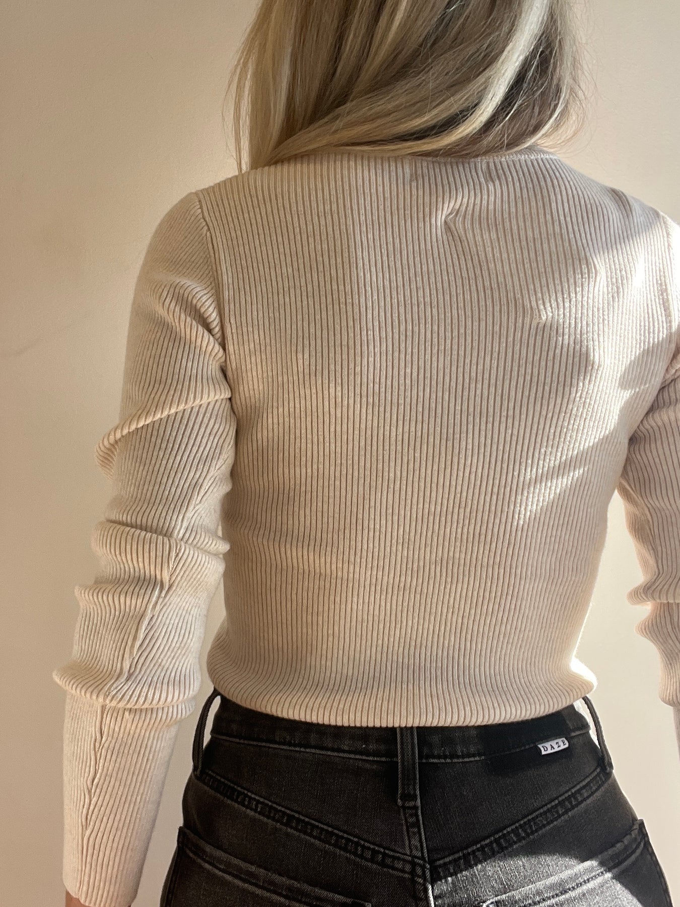 This oatmeal ribbed top features a fitted style and pairs perfectly as a layering piece or alone tucked into some jeans.