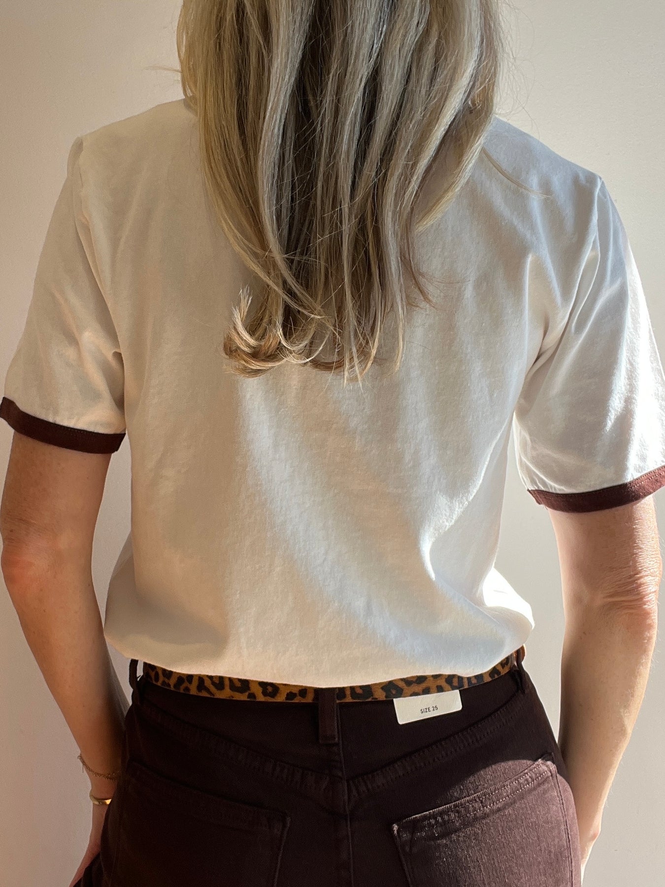 This tee features a classic ringer style with a bonjour graphic.