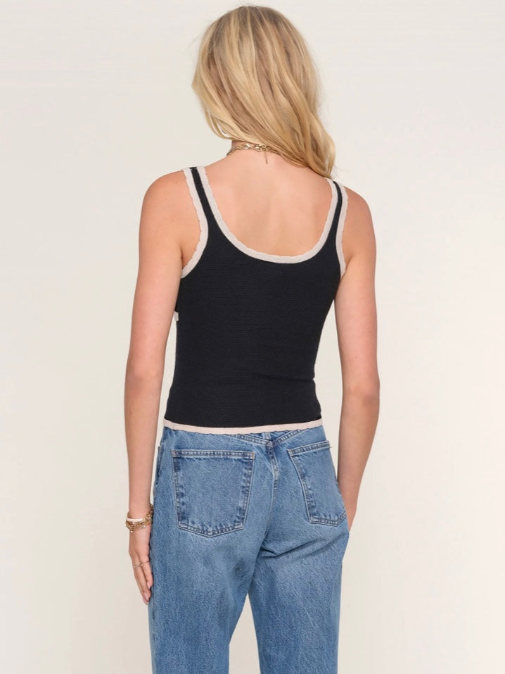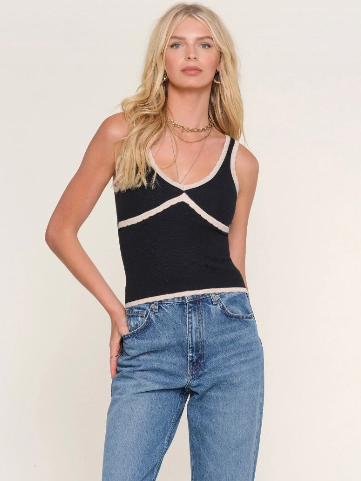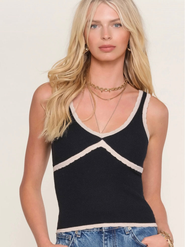 The Eliana Cami is soft knit cami with a contrast solid trim. Perfect for layering or wearing alone.