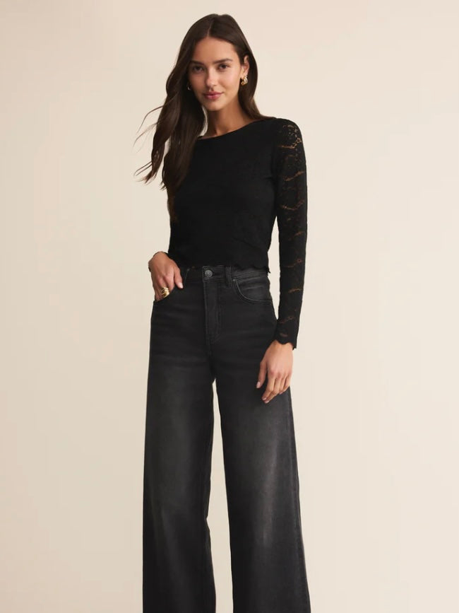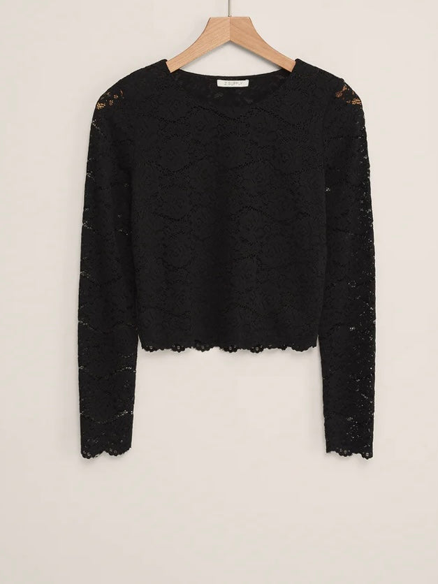 Crafted from stretch floral lace, this fitted long sleeve features scalloped edges and a crew neckline for a polished finish. The semi-sheer design feels equal parts romantic and chic.