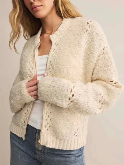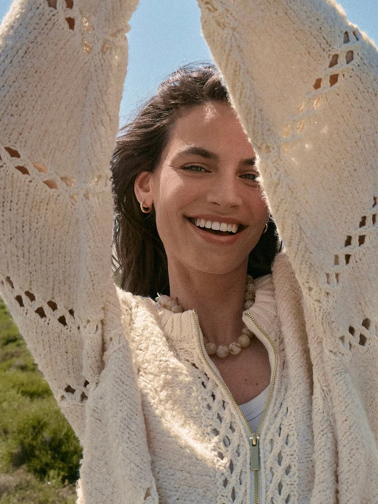 Airy, textured, and effortlessly cool, this relaxed crochet sweater is a layering dream. The novelty crochet pattern and cropped fit make it the perfect throw-on piece for everything from denim to dresses.