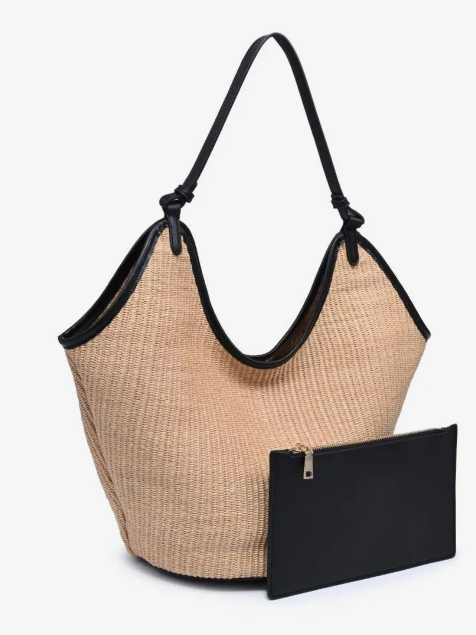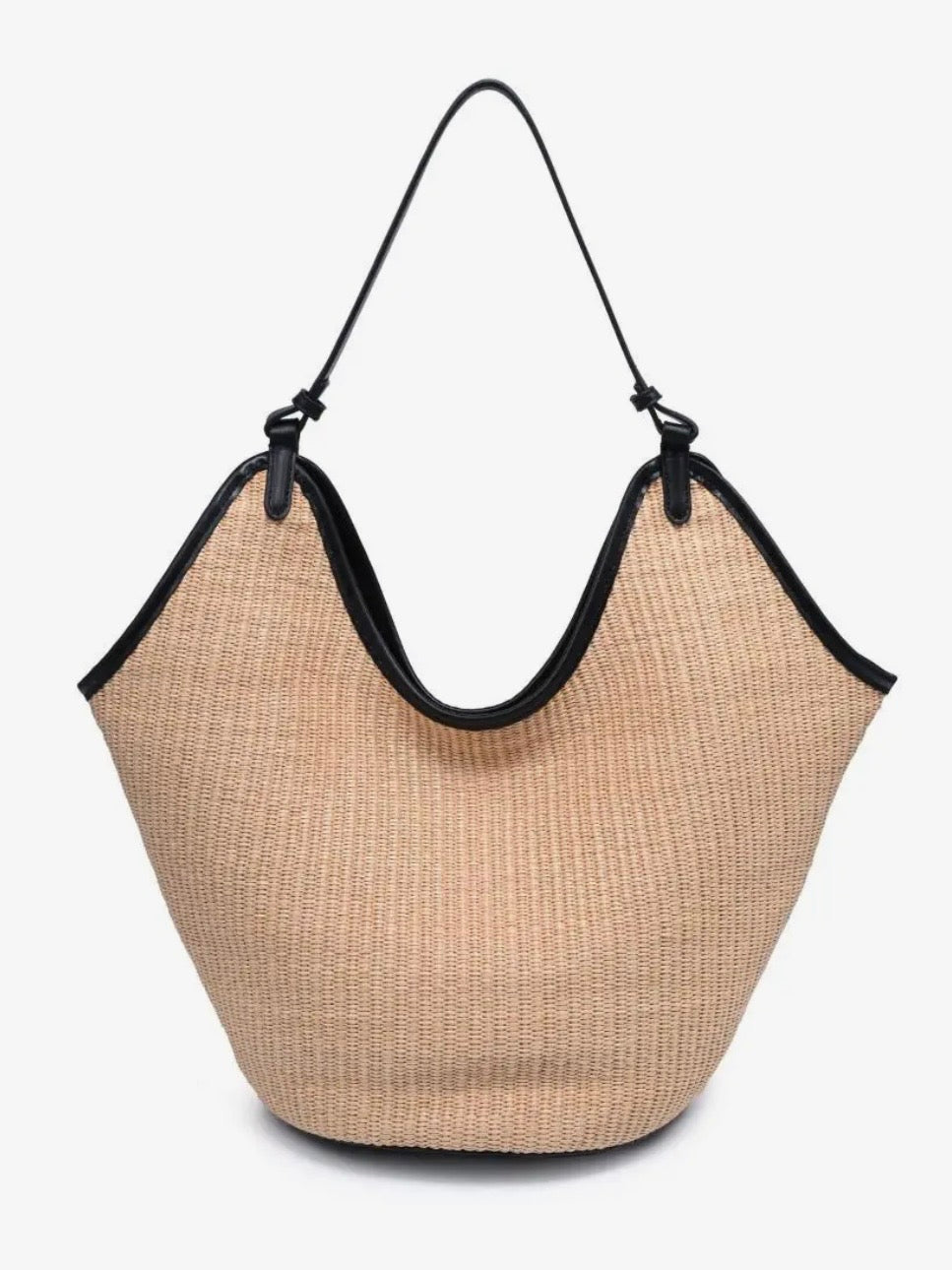 Effortlessly stylish, this straw shoulder bag features a sleek microfiber leather strap for a polished contrast. Lightweight yet roomy enough for essentials, it's the perfect blend of casual texture and modern sophistication.