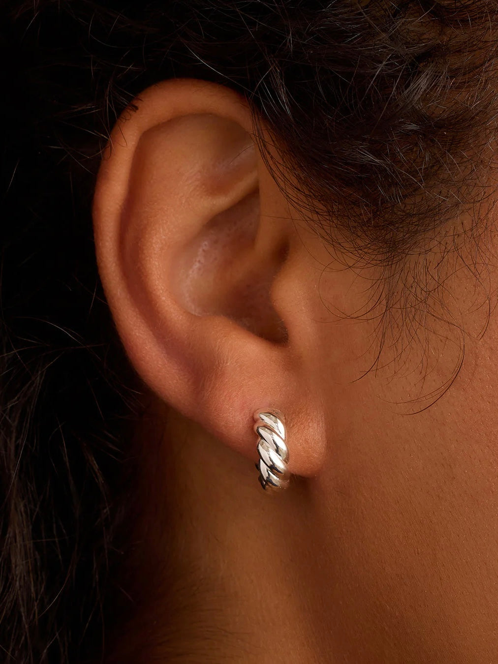 Elevate your style with the Crew Helium Huggies. Featuring a unique twist texture and helium design, these gold plated huggie earrings transition seamlessly from day to night. We love wearing ours alongside gold and diamond studs.