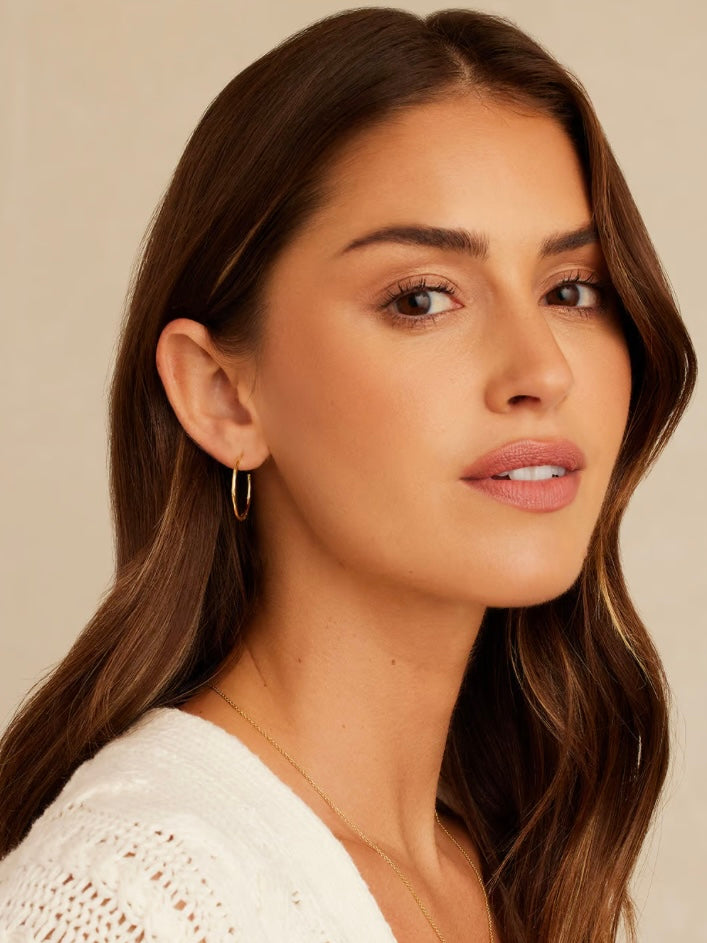 These gold-plated hoop earrings are timeless - show them off by wearing them with your hair tucked behind your ear or in a low bun.