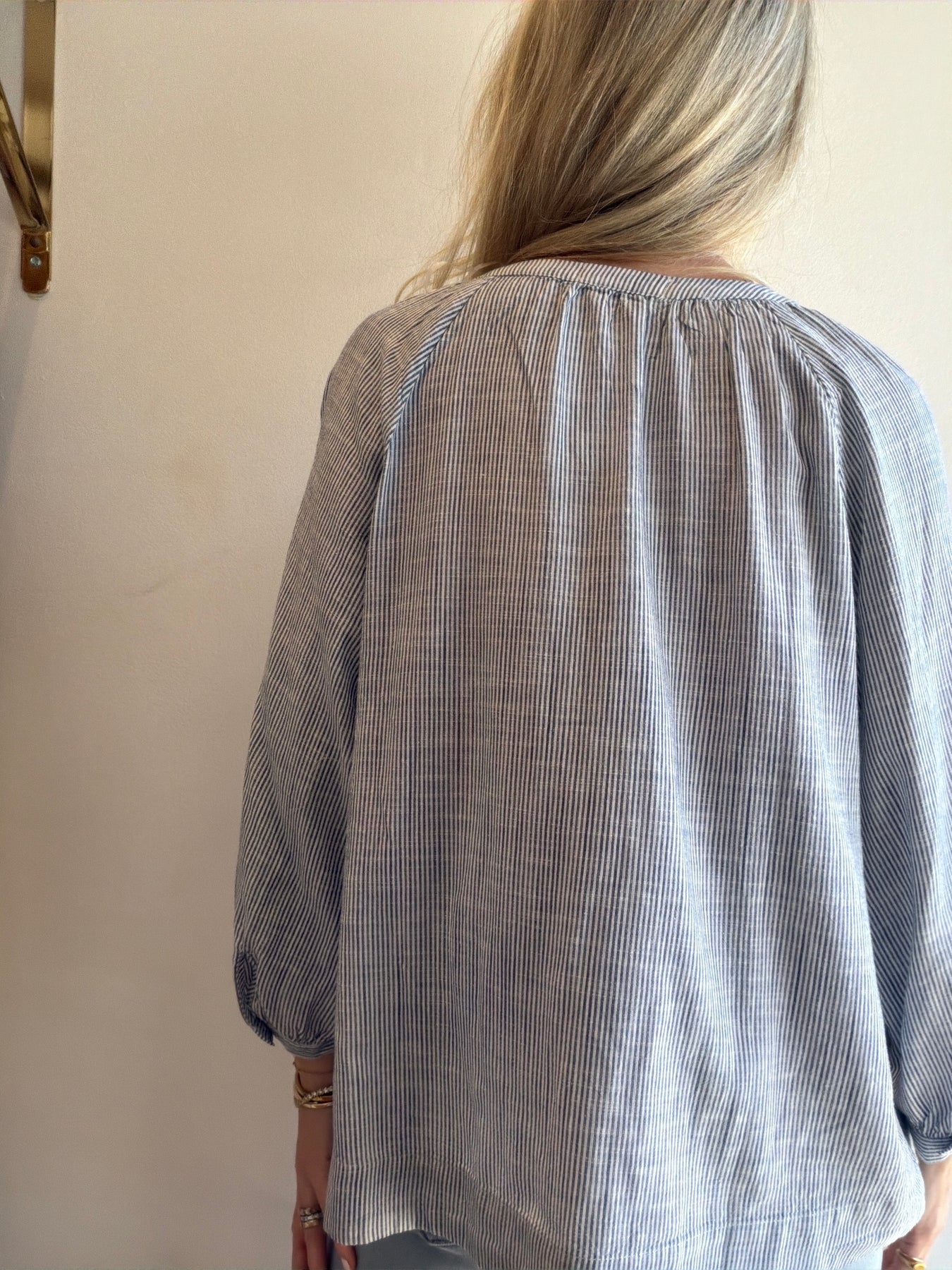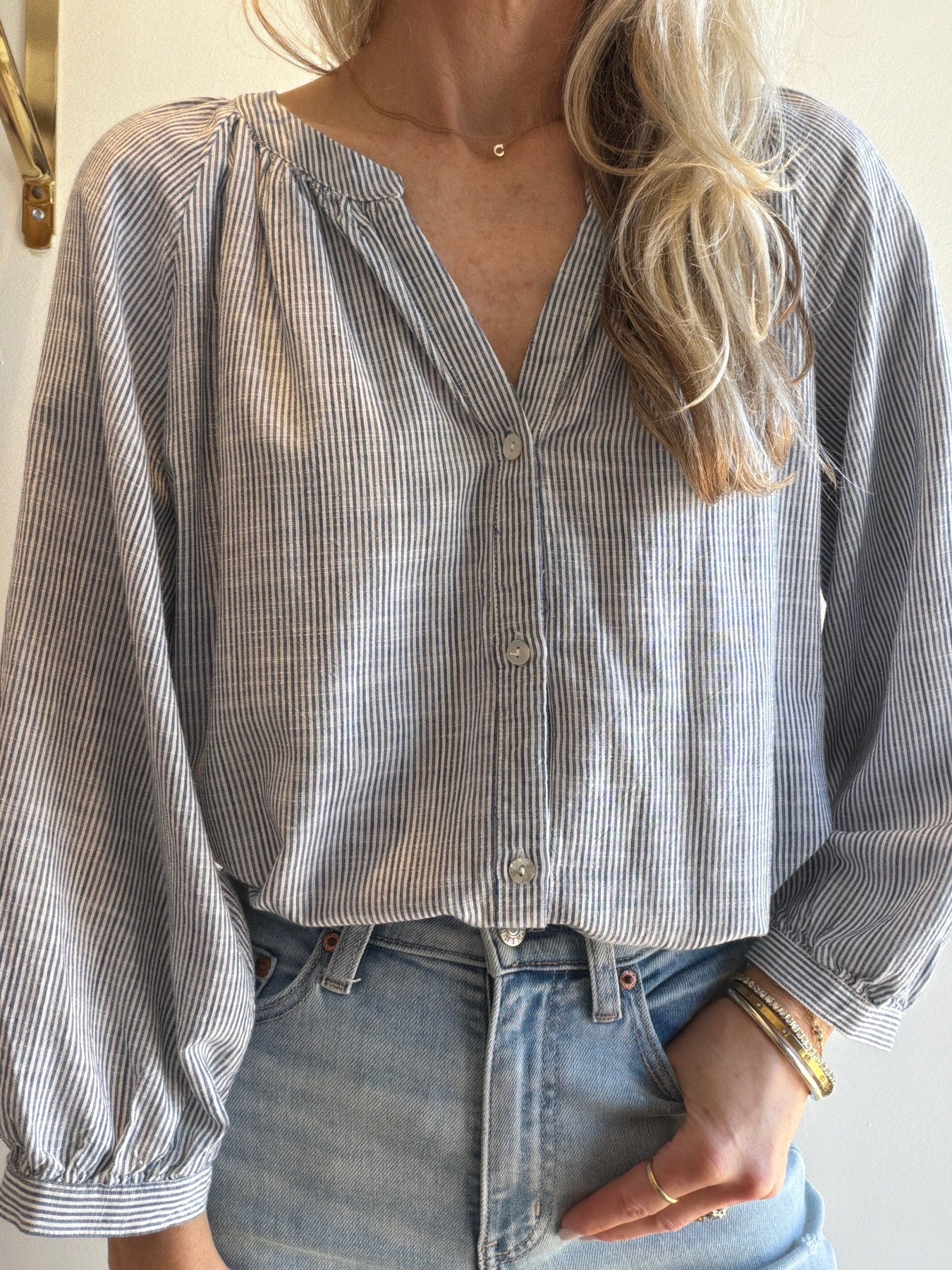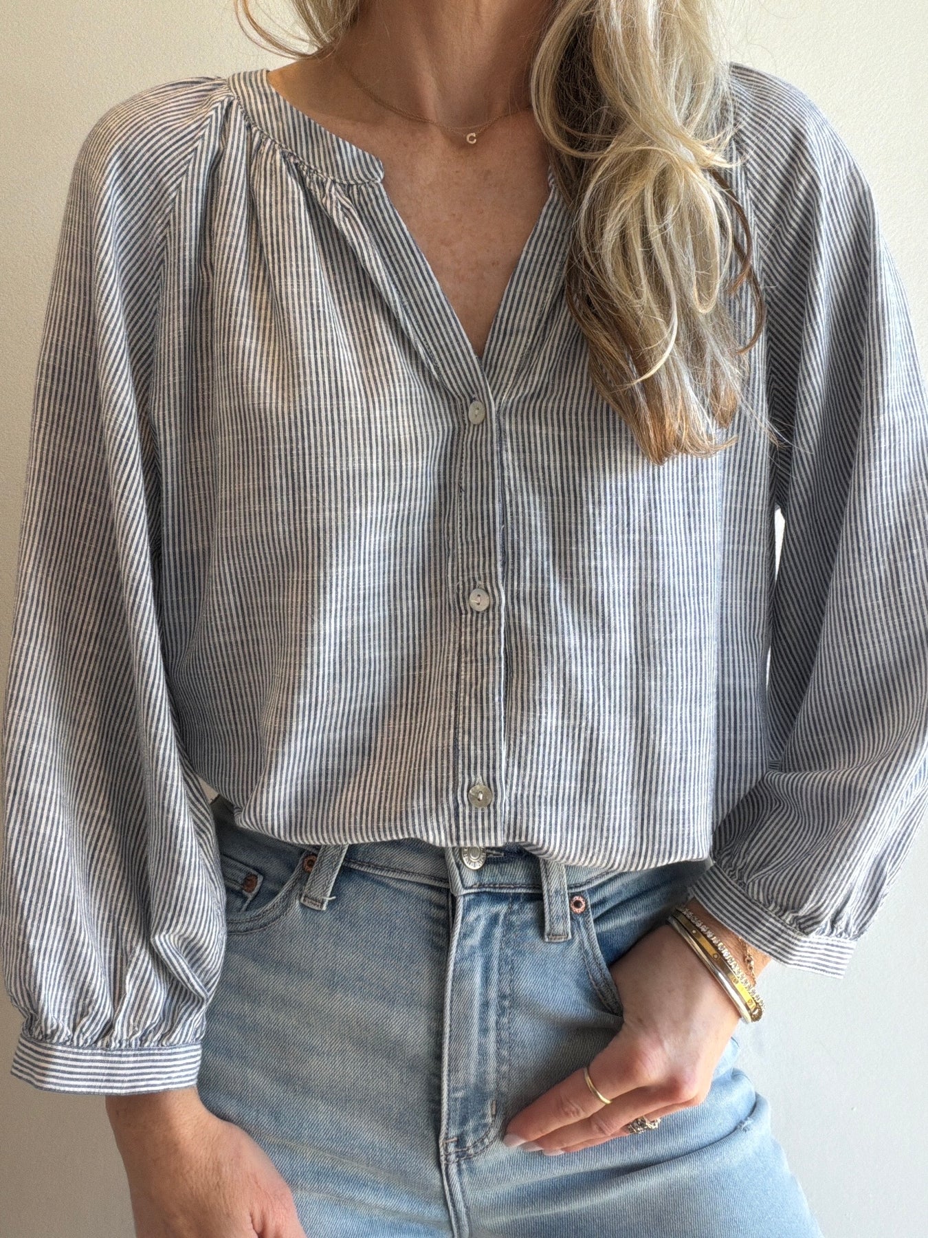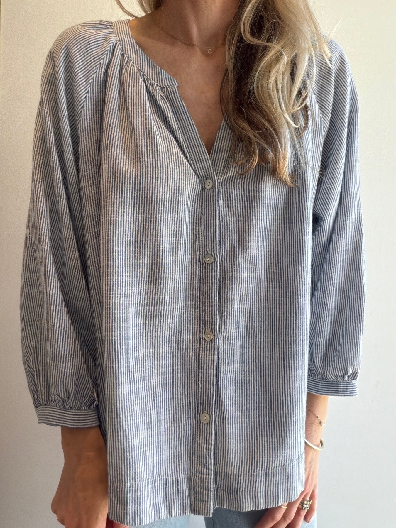 Elevate your everyday wardrobe with the Striped Long Sleeve Collared Button-Up Shirt.Featuring a timeless striped pattern, this shirt is designed for both versatility and style. The classic fit ensures all-day comfort, making it an ideal choice for work or casual outings. A front chest pocket adds functional detail while enhancing the overall design. The collared neckline and button-up front provide a polished look, while the long sleeves make it perfect for layering in cooler seasons or wearing on its own. Pair it with tailored pants or denim for a smart and effortless appearance. Composition is linen, cotton.