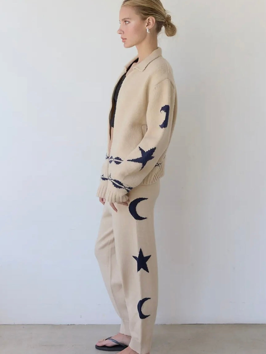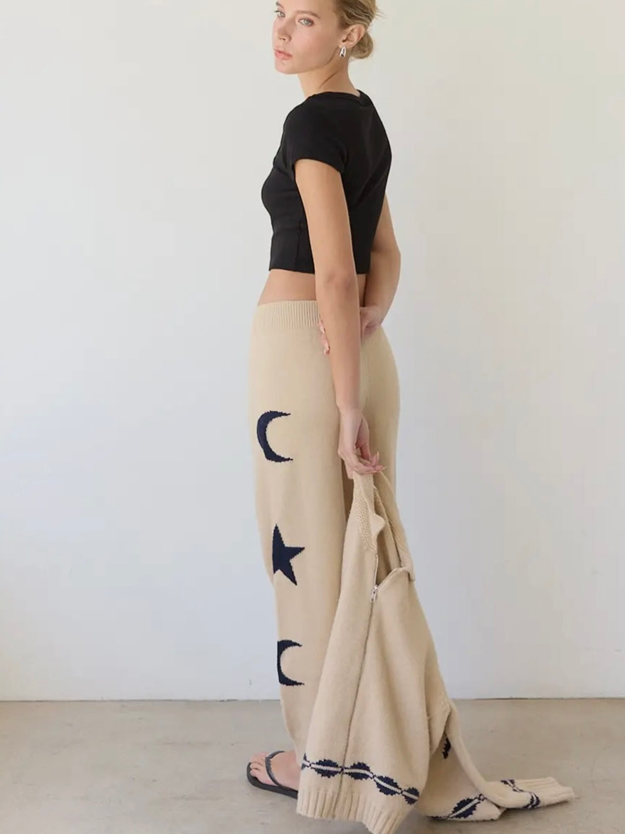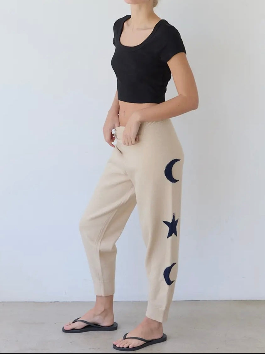 These jogger feature a soft knit, stars and moon graphics, and a comfortable waistline.